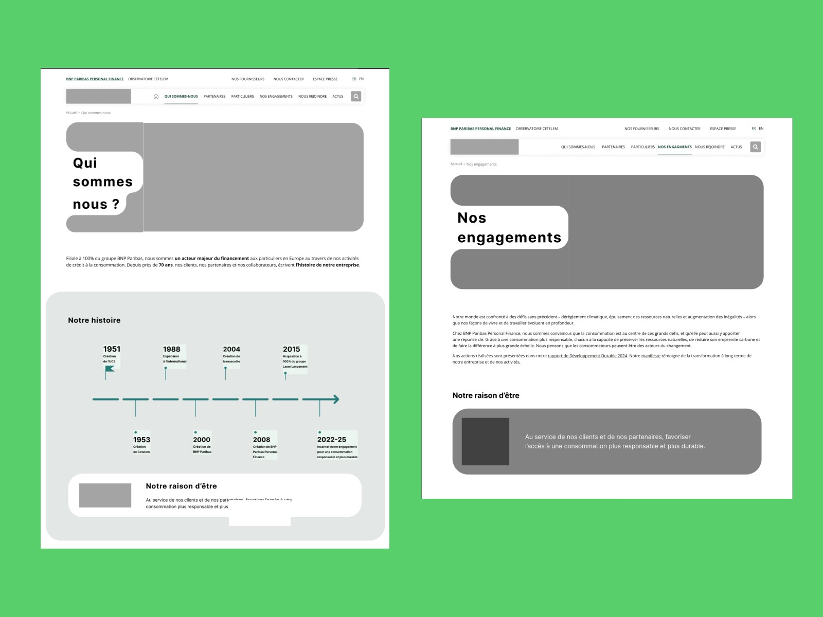 BNP Paribas Personal Finance, filiale du groupe BNP Paribas, est spécialisée dans le crédit à la consommation et le financement personnel. L’entreprise souhaitait améliorer l’expérience utilisateur de son site web afin de rendre l’accès à l’information plus clair et plus accessible pour différents publics : particuliers, professionnels et candidats. L’objectif principal était de simplifier la navigation, mieux hiérarchiser les contenus et aligner l’organisation du site avec les besoins réels des utilisateurs.